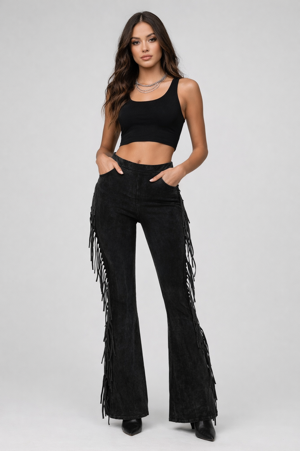 Black Bell Bottom Fringe Leggings